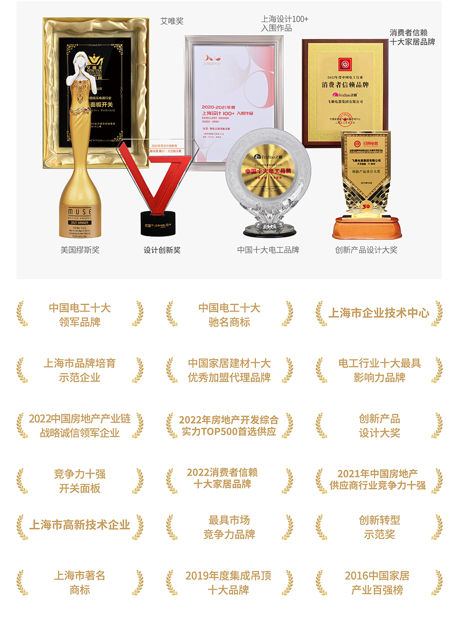 飞雕品牌也一直秉承绿色、环保的生产理念,率先通过ISO14001和OHSAS18001标准体系认证,拥有注册商标108件,先后荣获 “中国电开关行业标志性品牌”“上海市名牌产品”等荣誉称号,并于2021年荣获“中国电工行业十大领军品牌”“中国电工行业消费者信赖品牌”等荣誉称号。