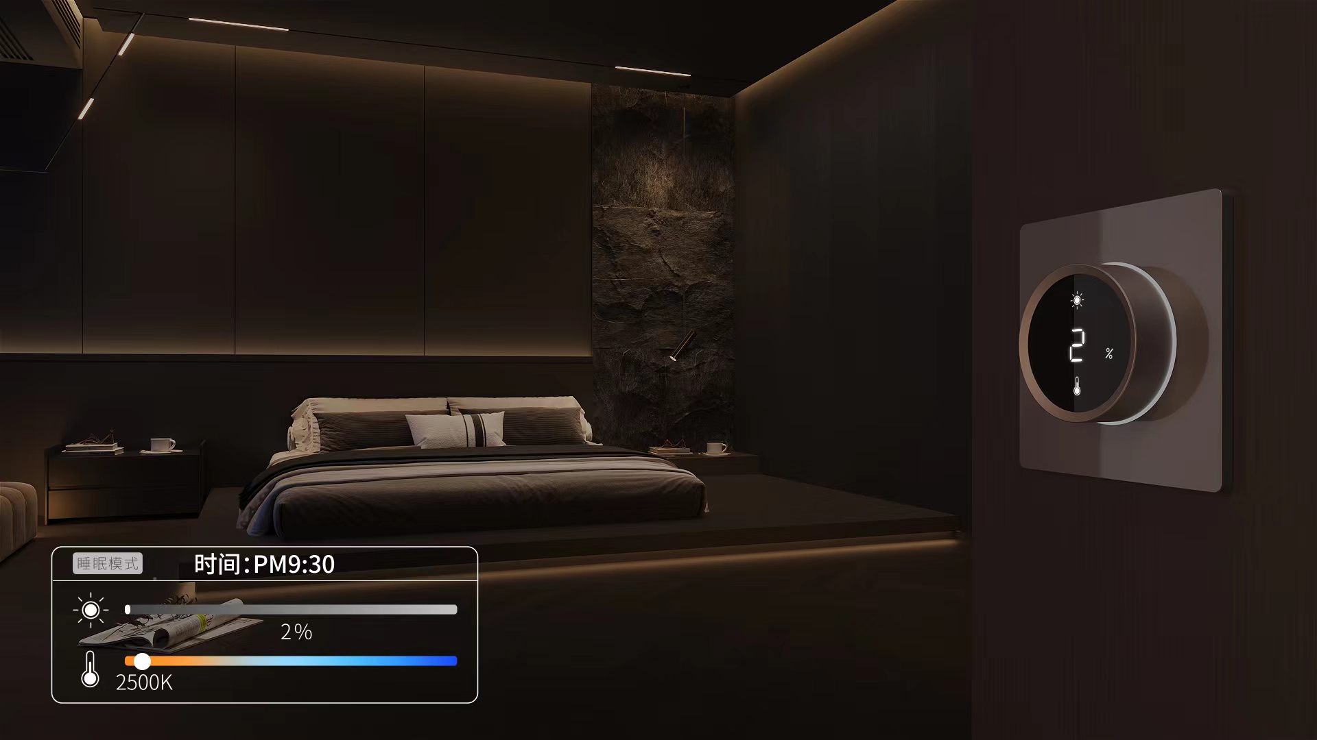 据徐智毅先生介绍“调光的方式上,我们有尝试将产品做成屏幕上下去滑动,但屏幕的成本高昂,会导致产品的售价水涨船高,于是我们想到做成酒店、宾馆的传统旋钮开关,但该款造型不能柔和性地调光,也不能一边调光一边调色温,只能实现单一功能,在这种情况下我们又做了一个小的融合。样式上做大旋钮,在旋钮上面做一块普通屏幕,用户只需要点击这个屏幕就可以去调节切换,既保证美观,又体现了使用的便利性。”