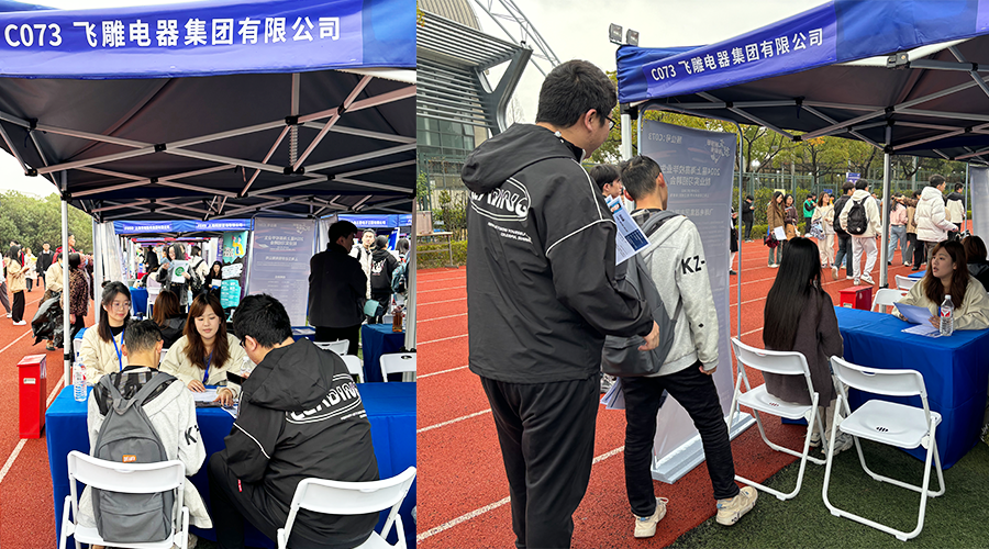 3月28日,2024上海高校毕业生“春季促就业攻坚行动”暨“‘实’现梦想 ‘就’等你来”就业实习招聘会在上海工程技术大学成功举办,飞雕电器作为受邀单位进场布展招兵买马、招贤纳士,在新的一轮人才抢夺战中迅捷敏锐,为集团2024新一年的发展注入新鲜的血液和活力。