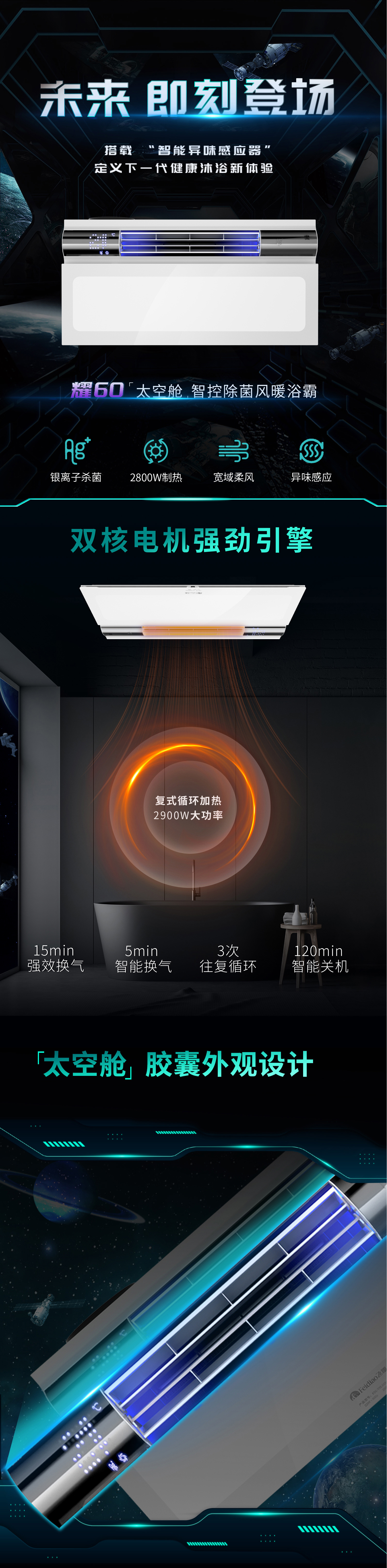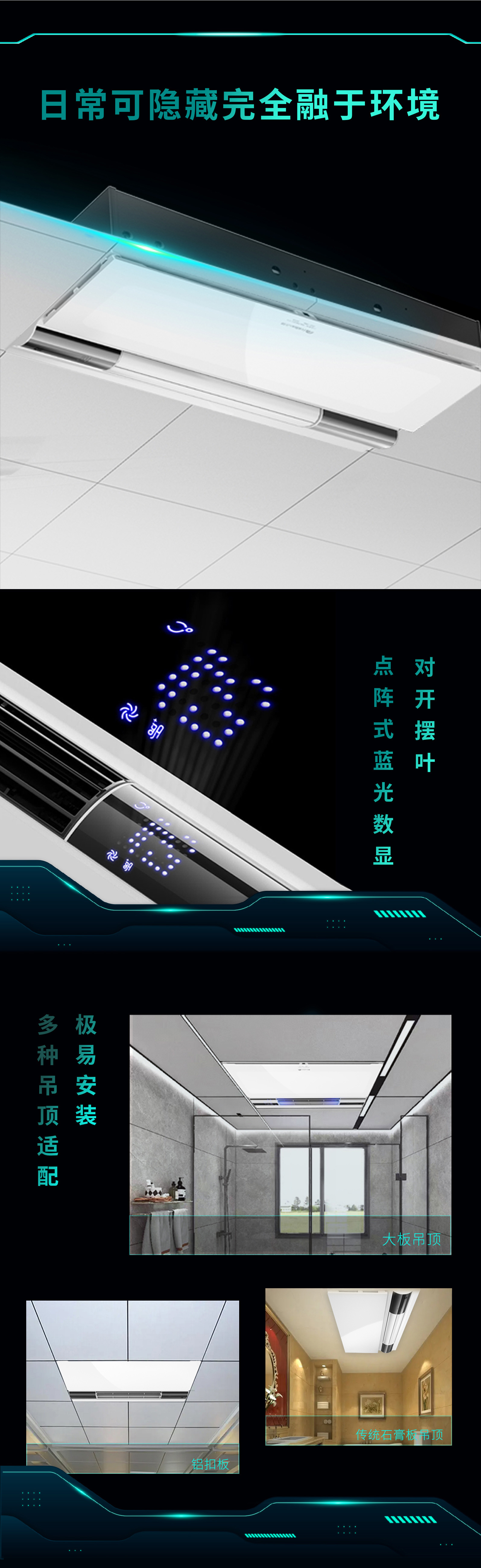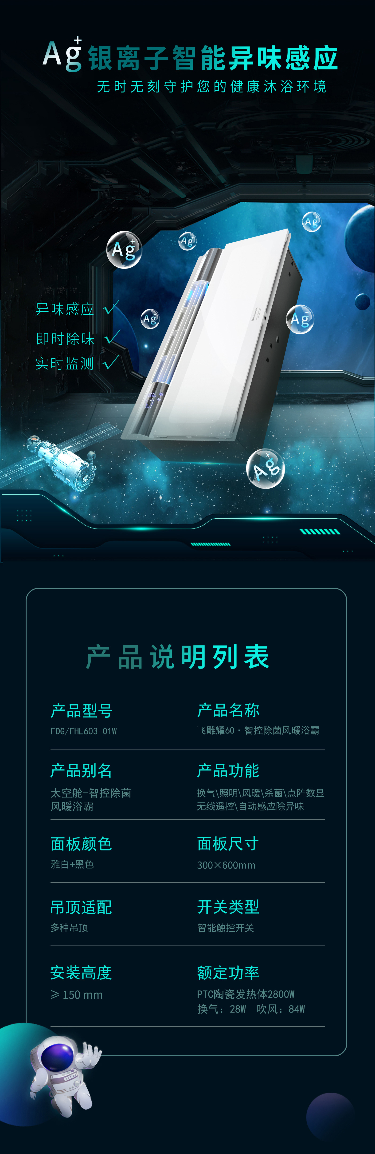产品功能:换气/照明/风暖/杀菌/点阵数显/无线遥控/自动感应除异味